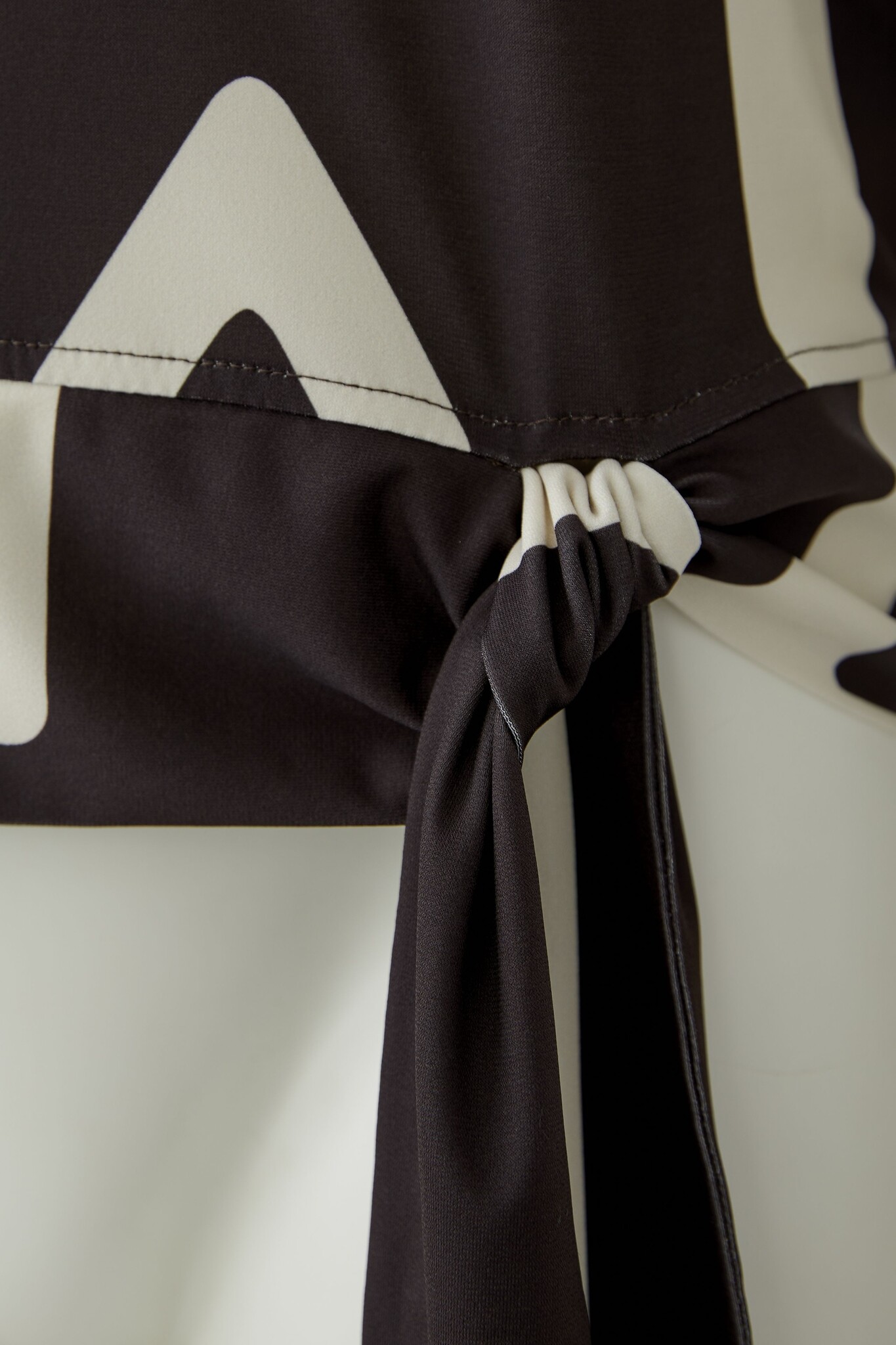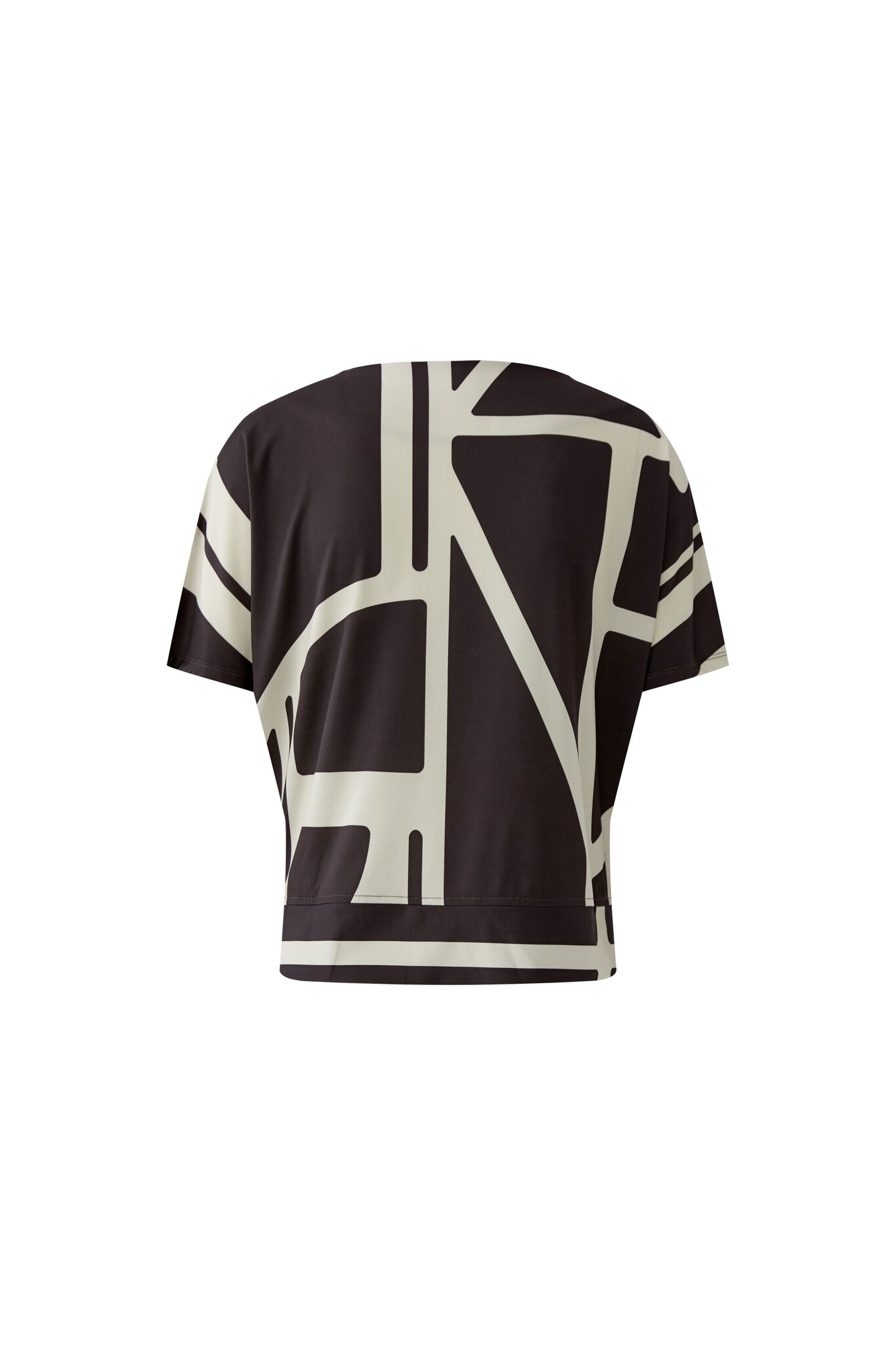 Miss Lagotte Shirt in de Kleur Bruin/Ecru Combinatie met ronde hals, korte mouwen en een strik in de boord om het iets aan te snoeren.