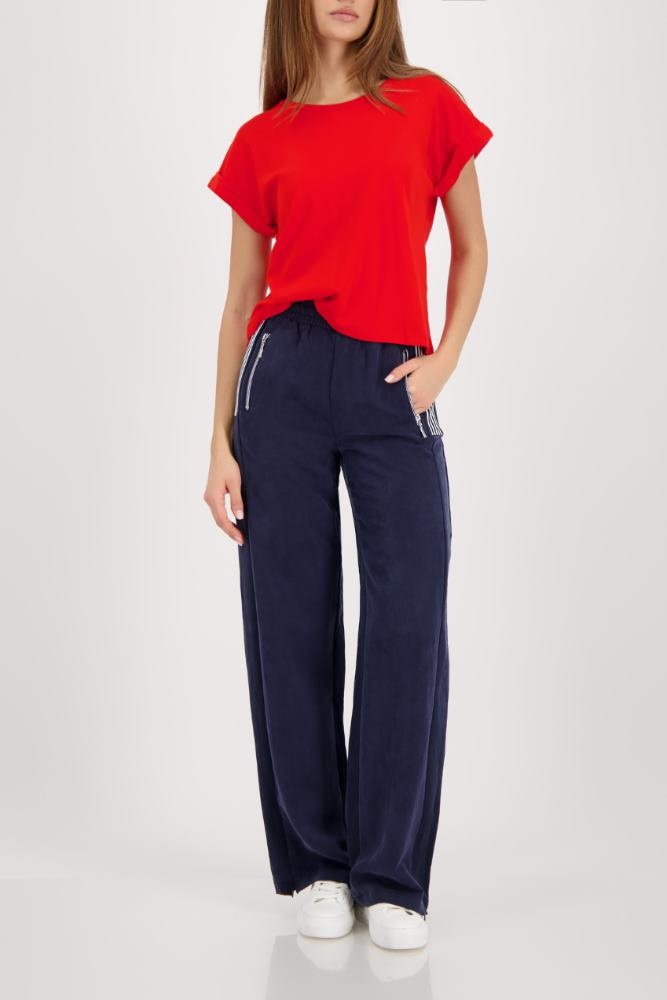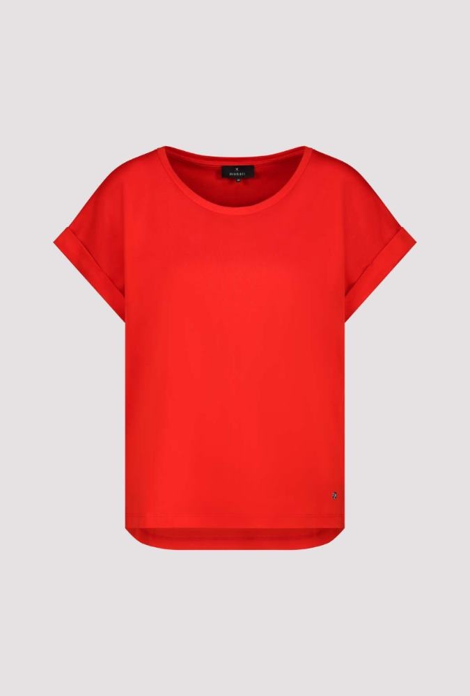 Monari Shirt in de Kleur Rood met ronde hals en kapmouwen.
