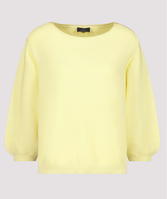 Monari Sweater in de kleur Geel met ronde hals, lange mouwen met versmalde manchetten en iets ballonmouw.
