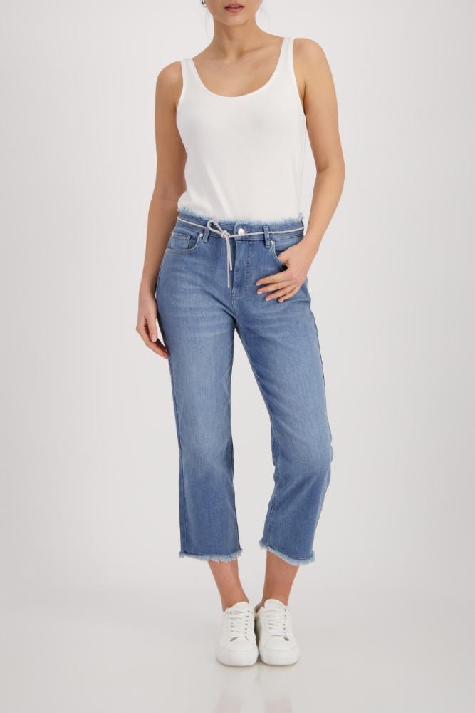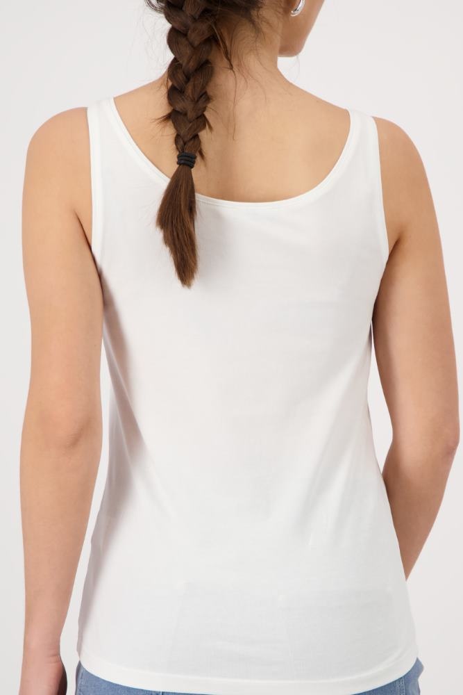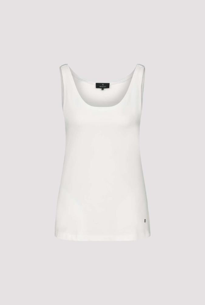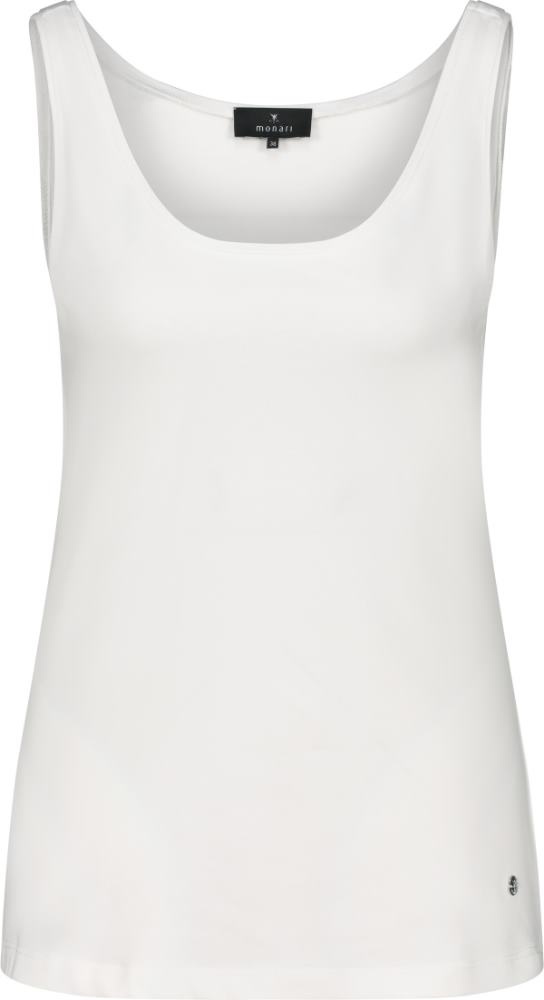 Monari Top in de Kleur Offwhite met ronde hals en iets bredere bandjes en licht getailleerd.