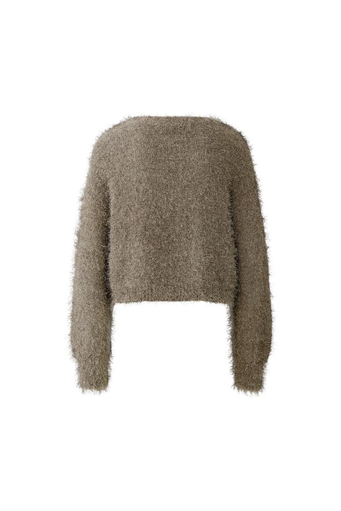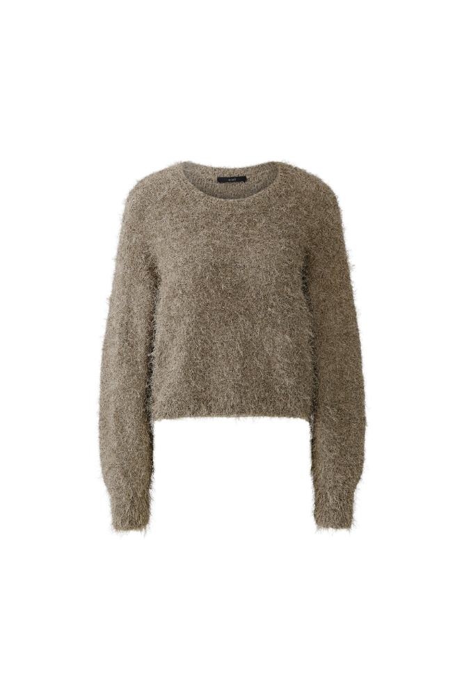OUI Pullover in de kleur Taupe met ronde hals, lange mouwen en geheel in een semi fluffy touch.