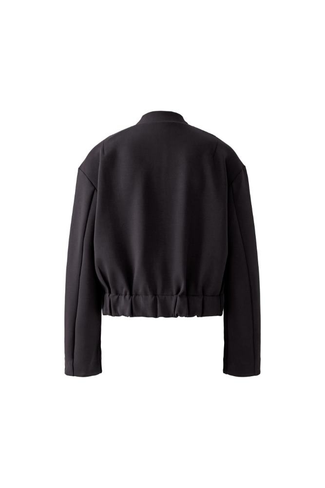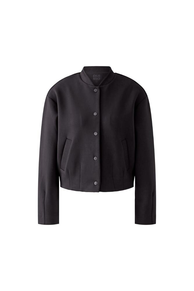 OUI Tricot Jasje in de kleur Bruin met staande hals, drukknoopsluiting, steekzakken en lange mouwen.