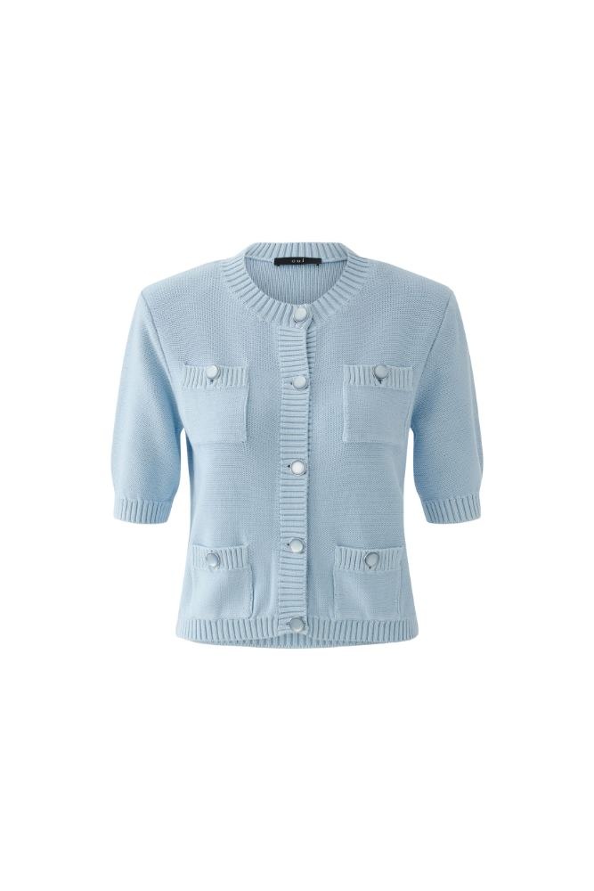 OUI Vest in de Kleur Blue met ronde hals, knoopsluiting, korte mouwen en 4 opgestikte zakjes. Dit is een iets korter vestje.