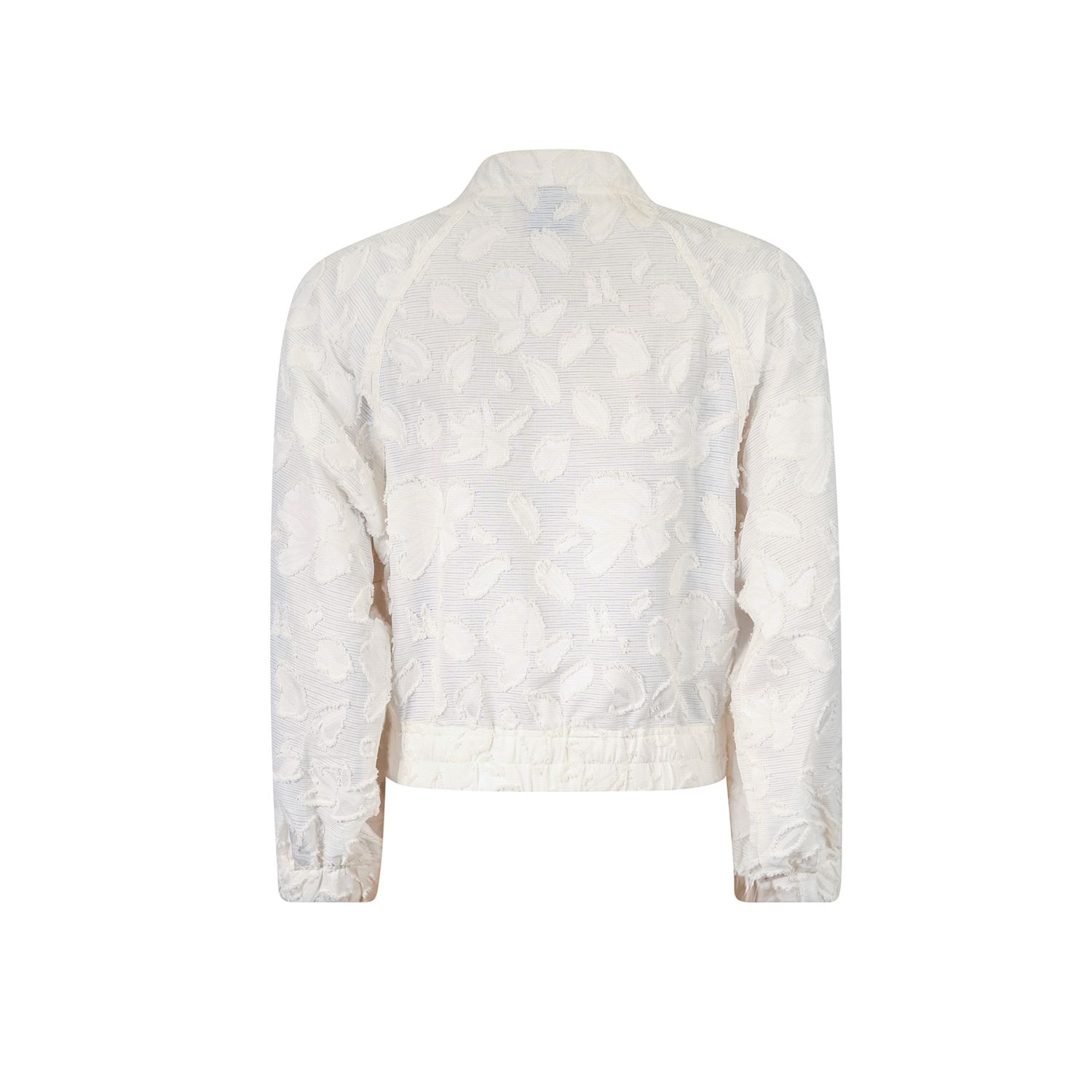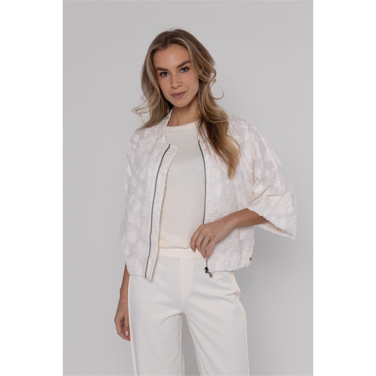 Poools Ausbrenner Jasje in de Kleur Ecru met ronde hals, ritssluiting, lange mouwen en geheel in een ton sur ton bladmotief.