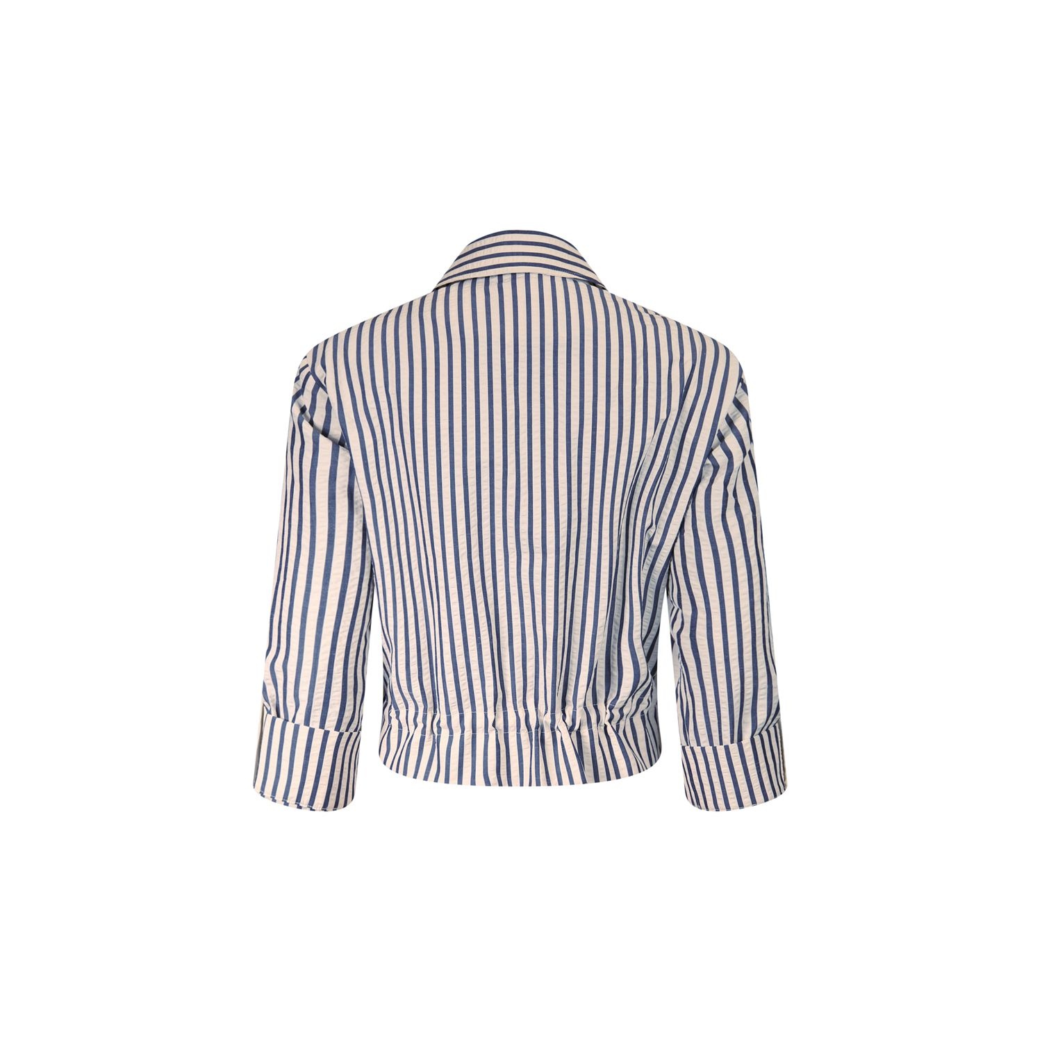 Poools Jasje in de Kleur Ecru/Marine met kraag, drukknoopsluiting, 3/4 mouwen en gestreept.