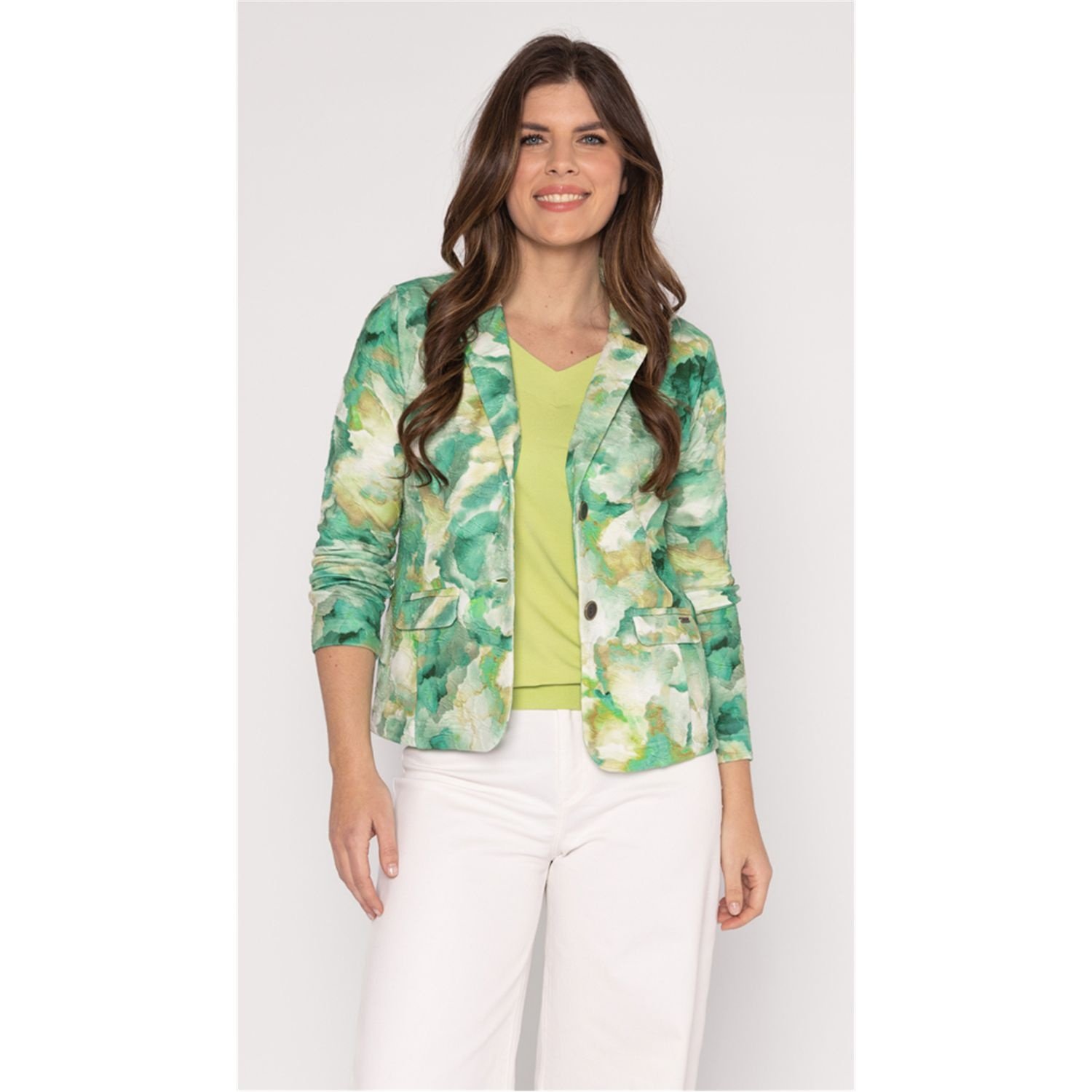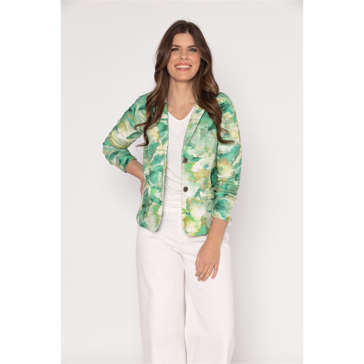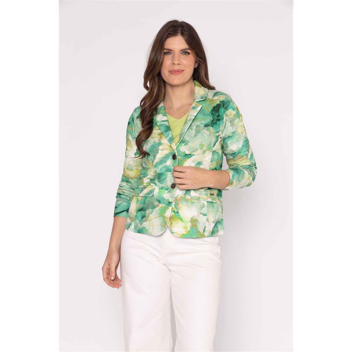Roberto Sarto Blazer in de Kleur Groen Combinatie met kraag en rever, knoopslutiing, klepzakken, lange mouwen en in een deels voelbare print.