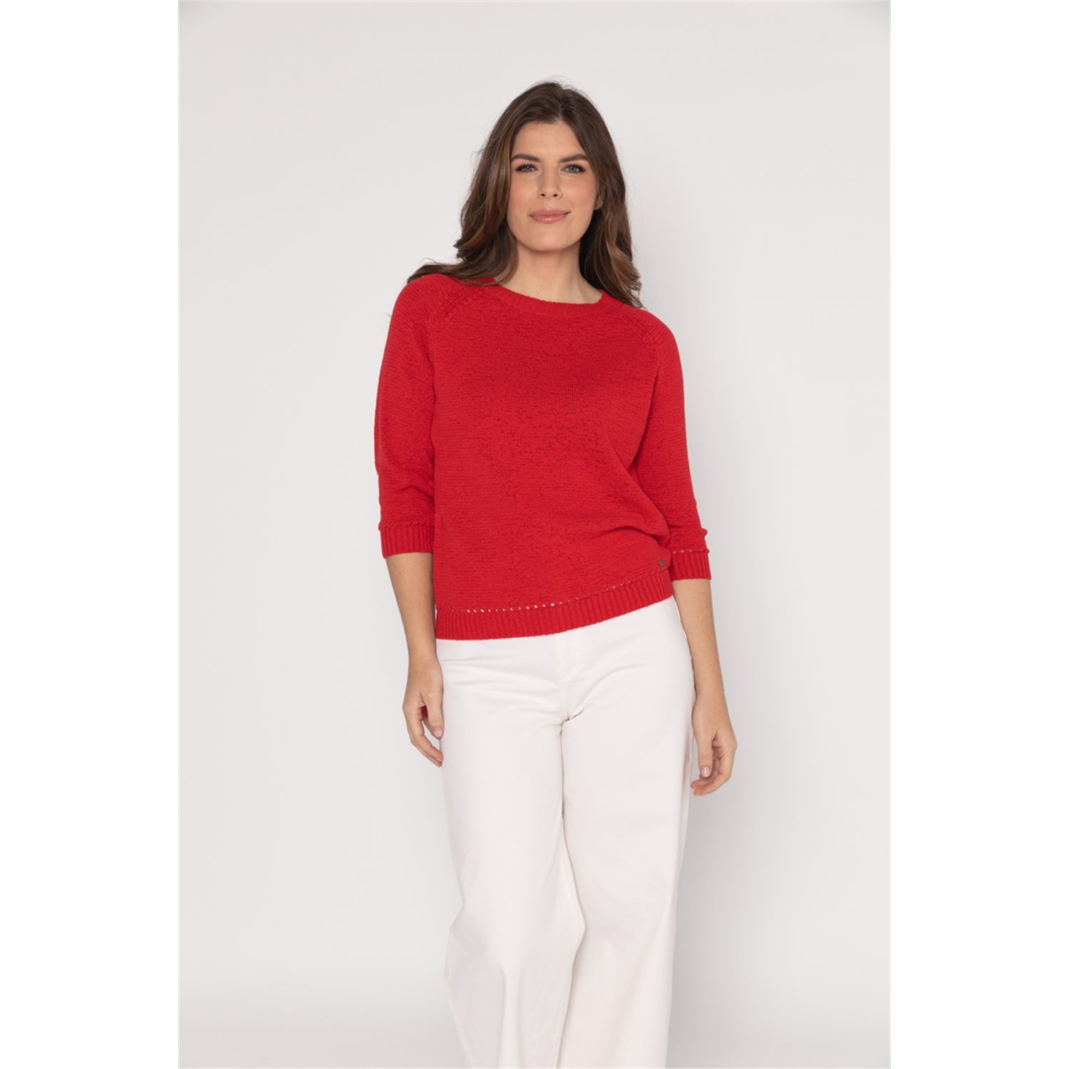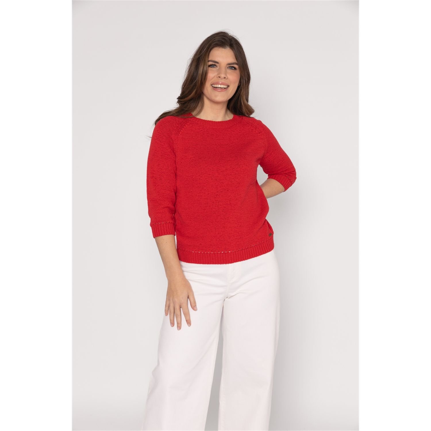 Roberto Sarto Pullover in de Kleur Rood met ronde hals, 3/4 Mouwen en in een bandjesgarenkwaliteit wat comfortabel draagt.