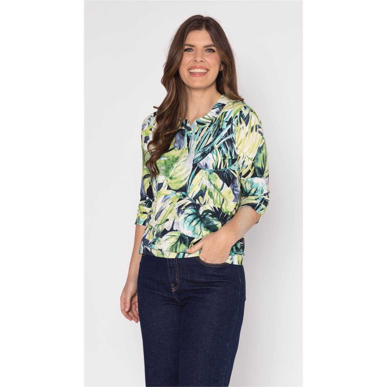 Roberto Sarto Shirt in de Kleur Groen Combinatie met ronde hals, 3/4 mouwen en een boord.