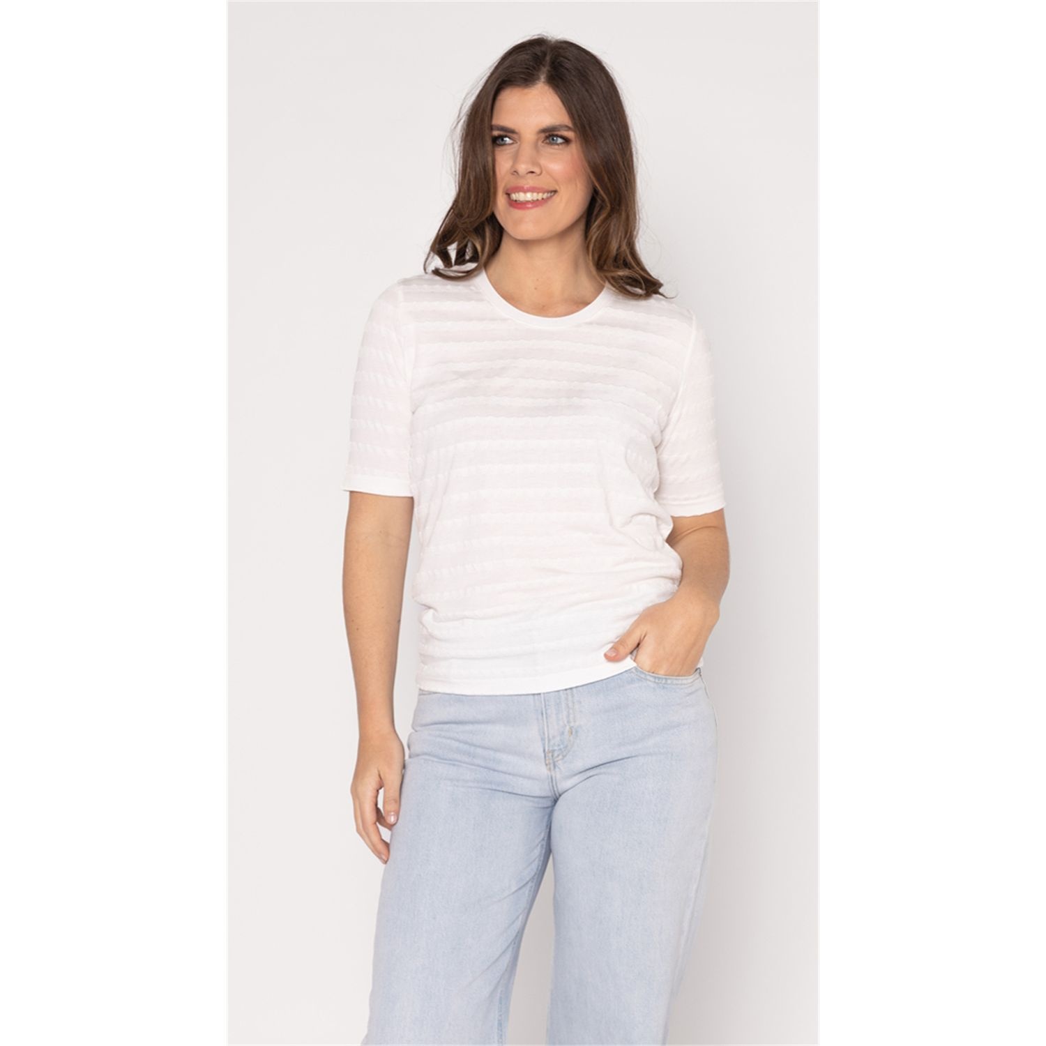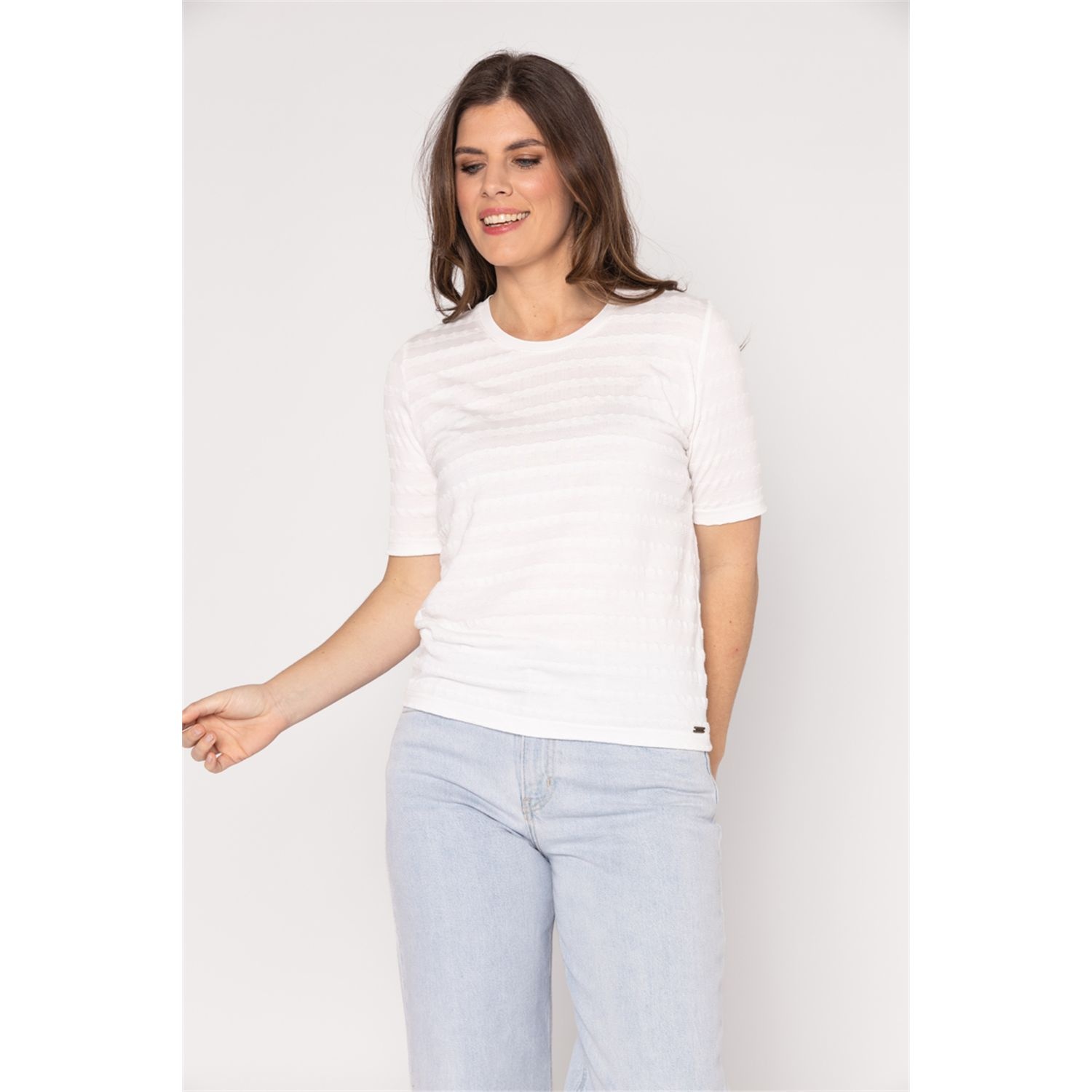 Roberto Sarto Shirt in de kleur Offwhite met ronde hals, korte mouwen en in een voelbare streep.