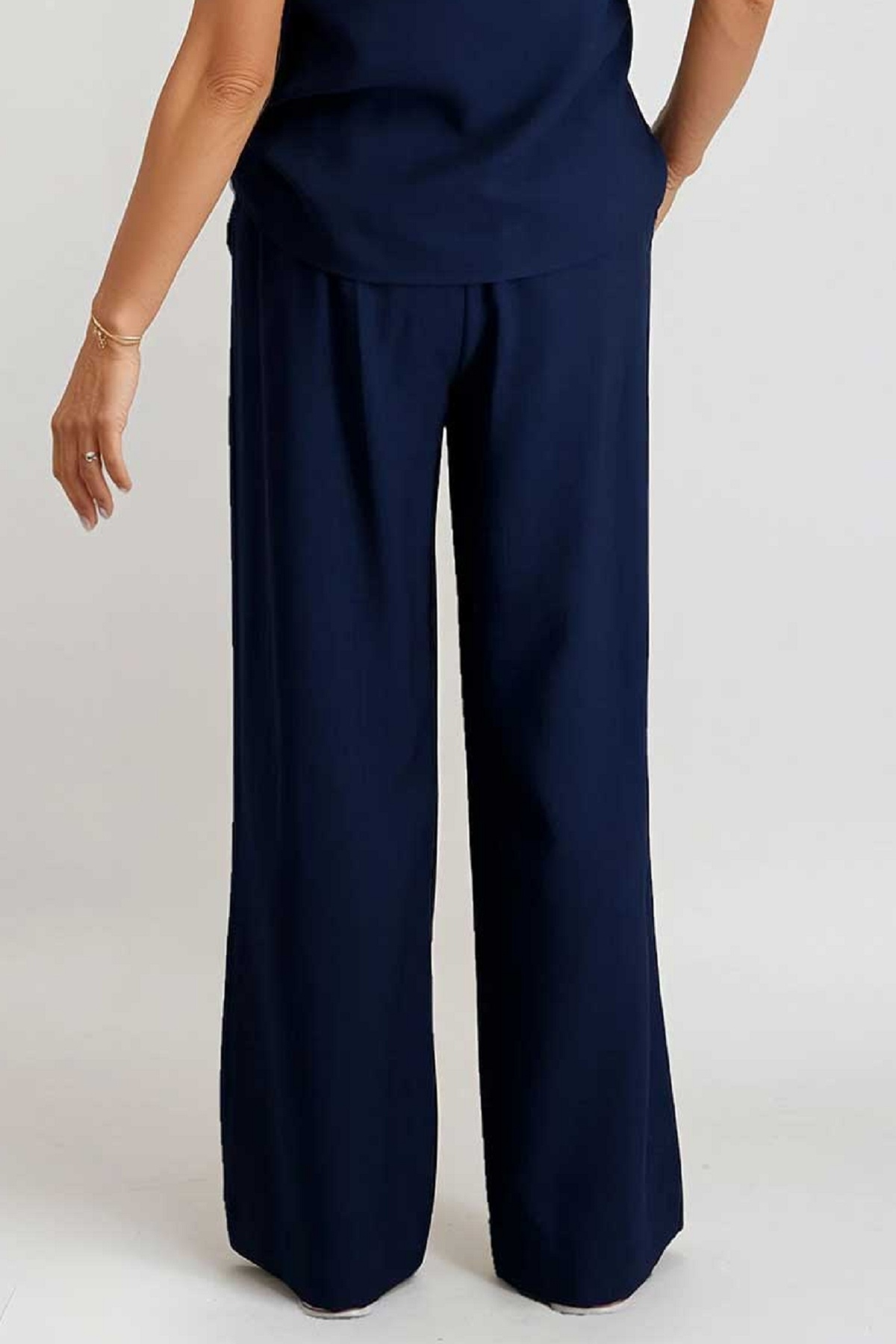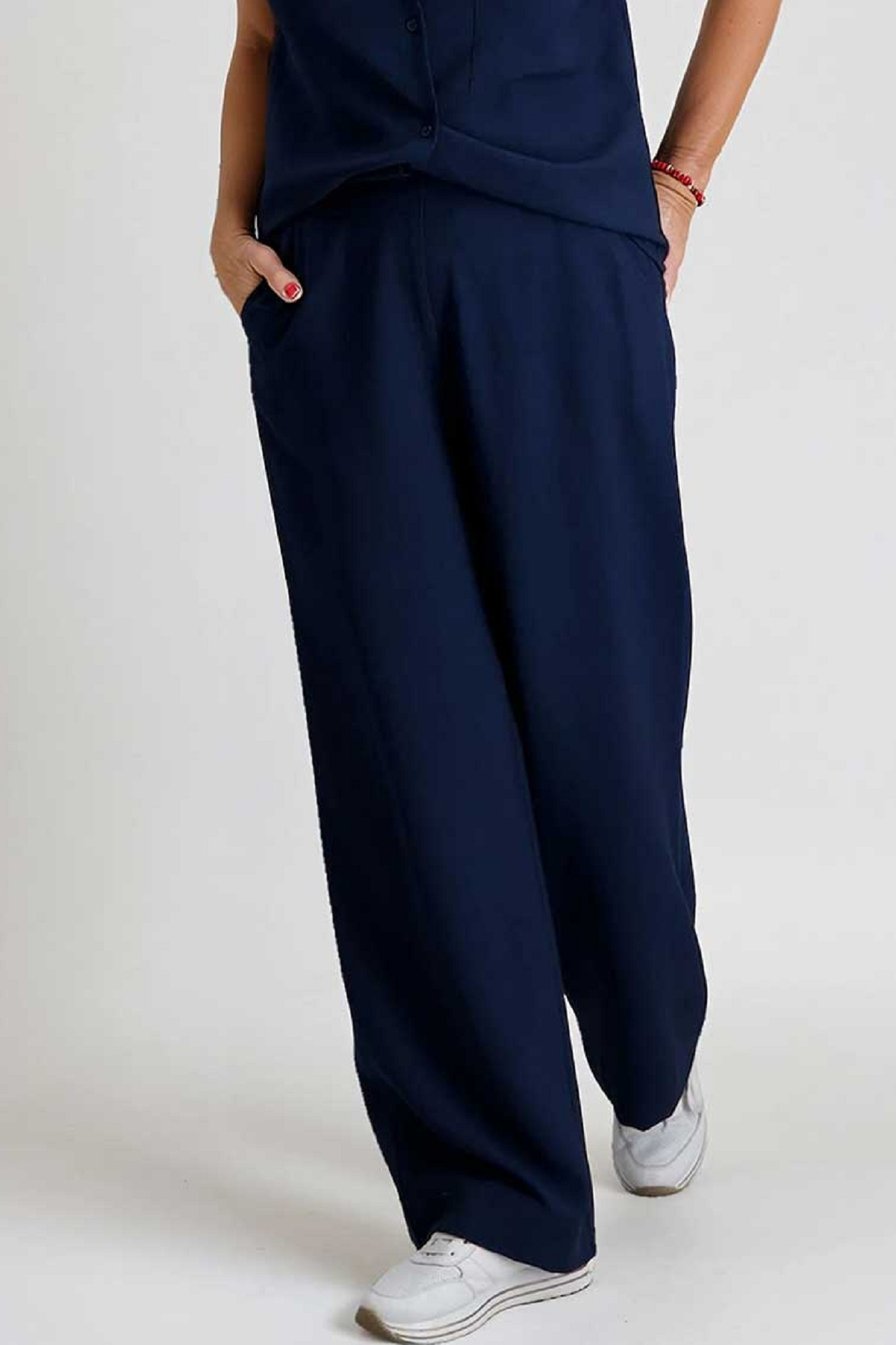 Signa Nature Broek in de Kleur Marine met elastische band, steekzakken en rechte pijpen.