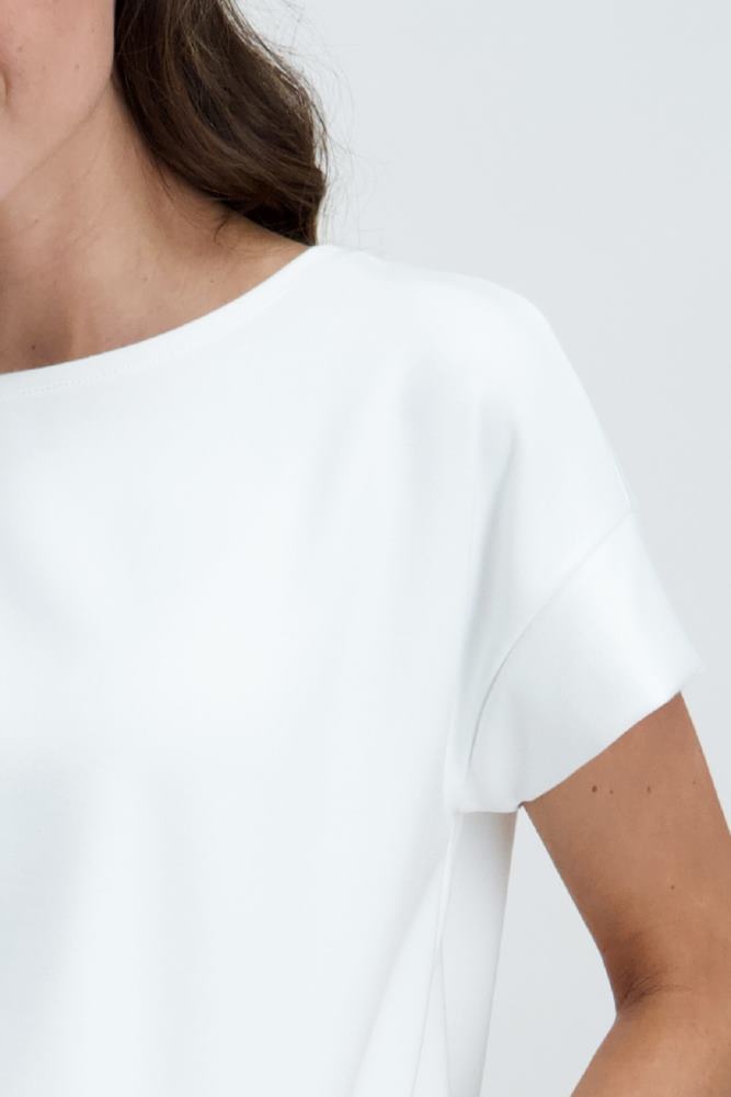 Signe Nature Shirt in de Kleur Ecru met ronde hals, kapmouwen en in een mooie zachte kwaliteit.