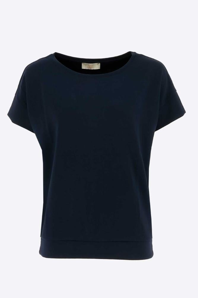 Signe Nature Shirt in de Kleur Marine met ronde hals, kapmouwen en in een mooie zachte kwaliteit.