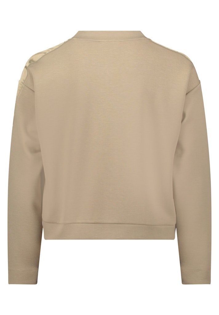 So Cosy Tricot Jasje in de kleur Khaki met staande hals, ritssluiting, 2 steekzakken met strassjes en lange mouwen.