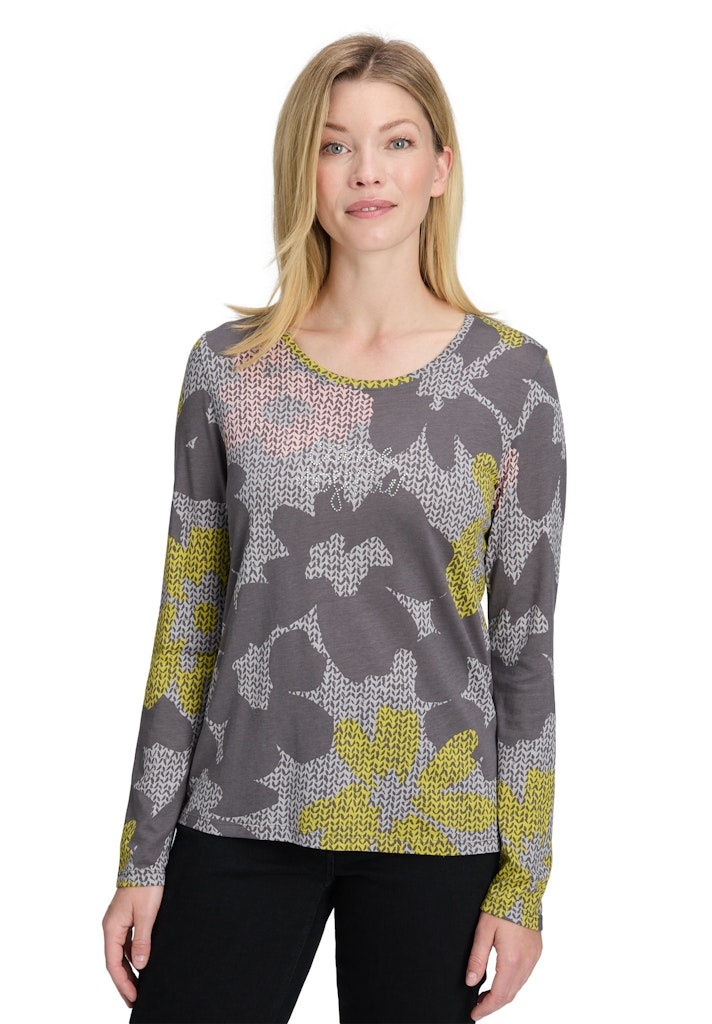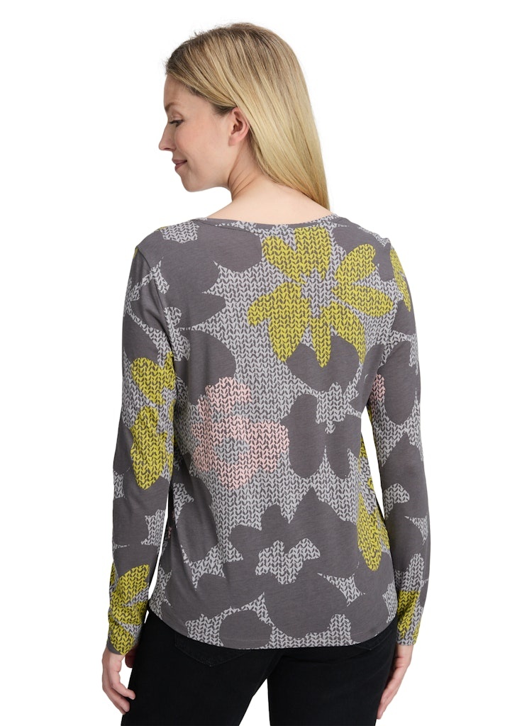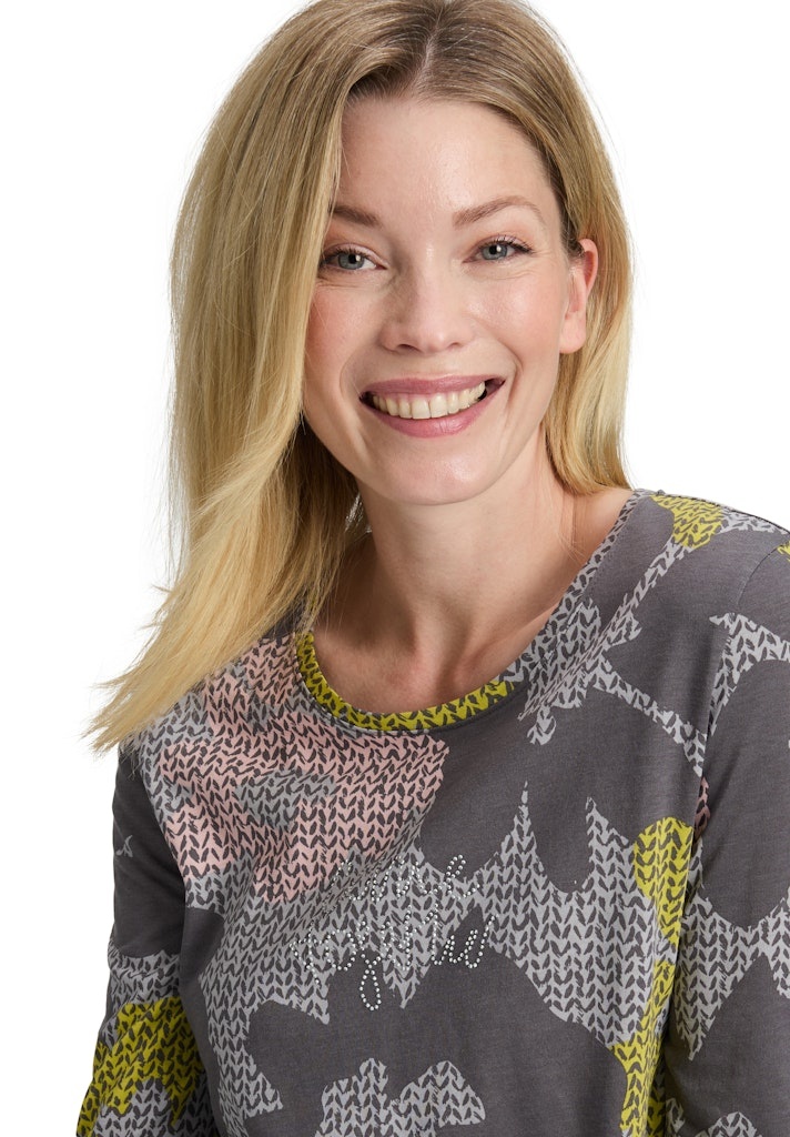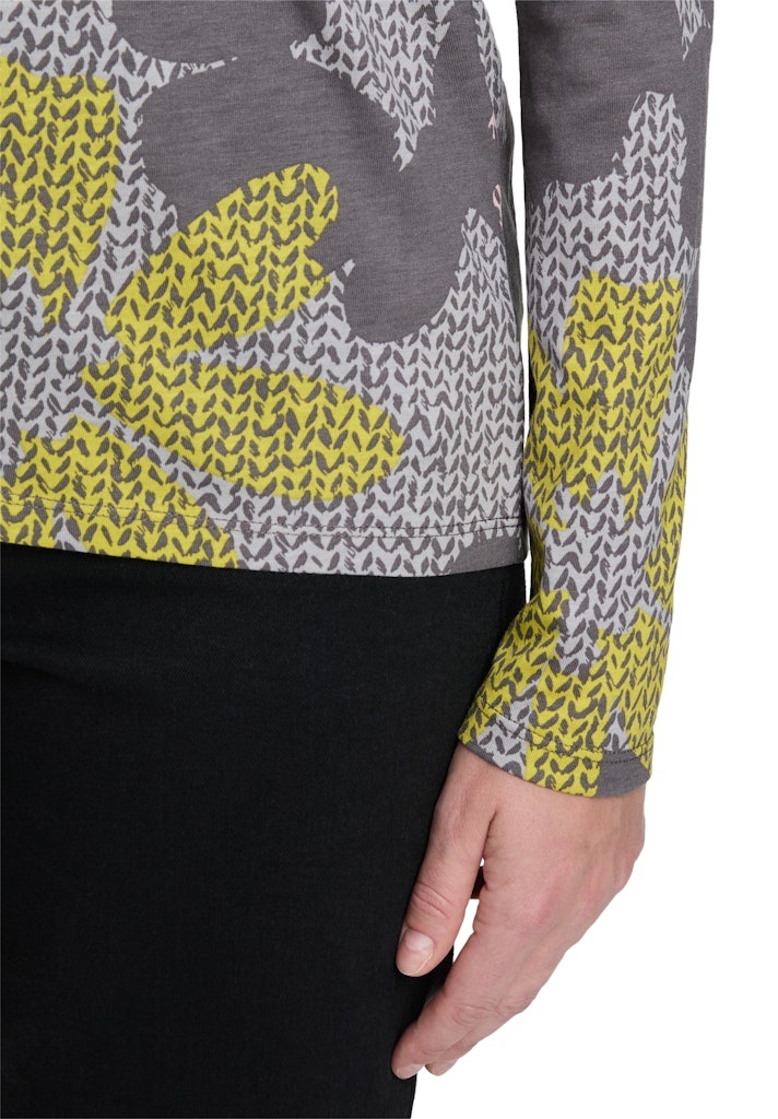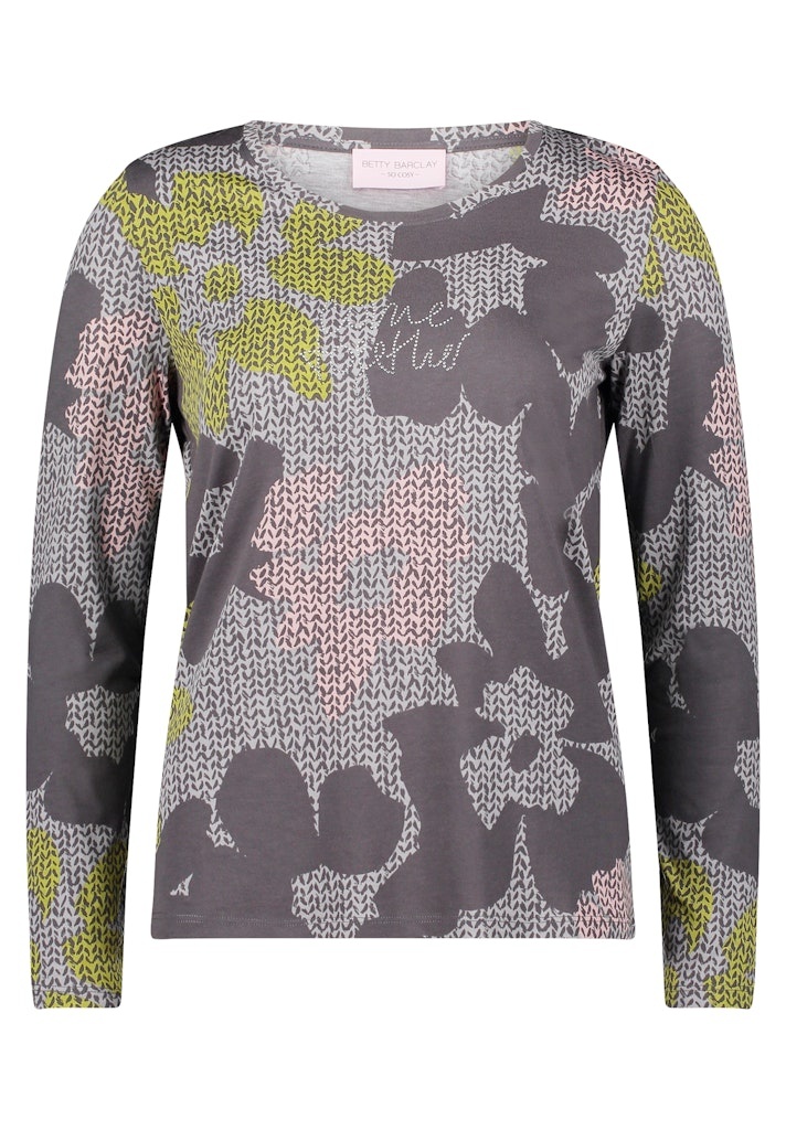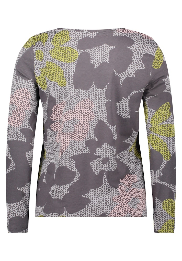 So Cosy Shirt in het Grijs/Groen/Rose Combinatie met ronde hals, lange mouwen en in een vlekprint.