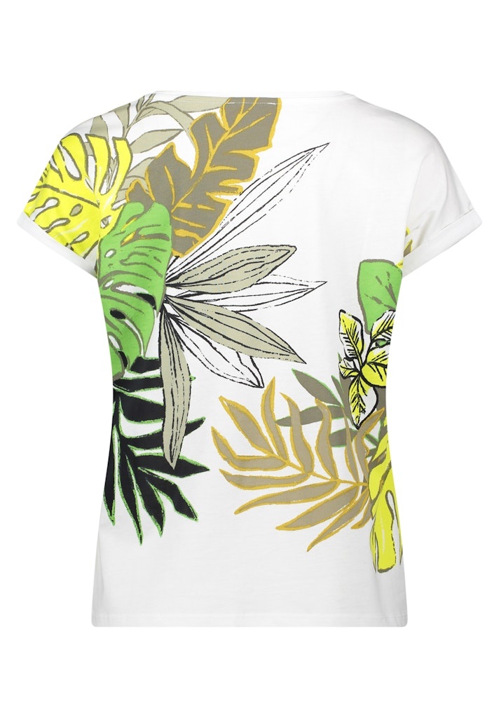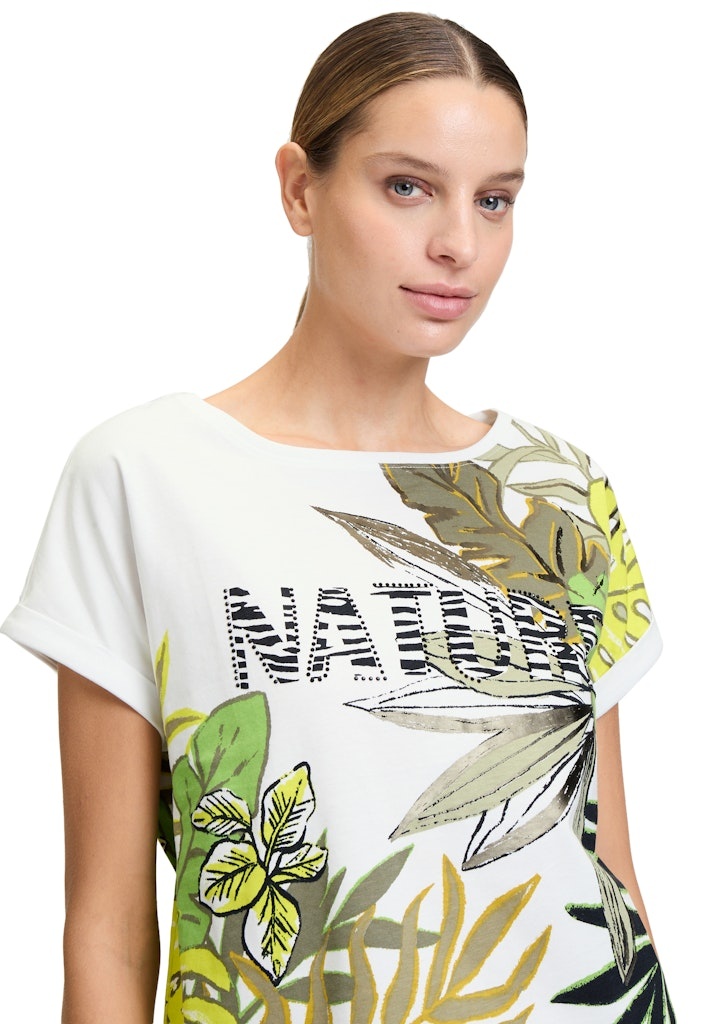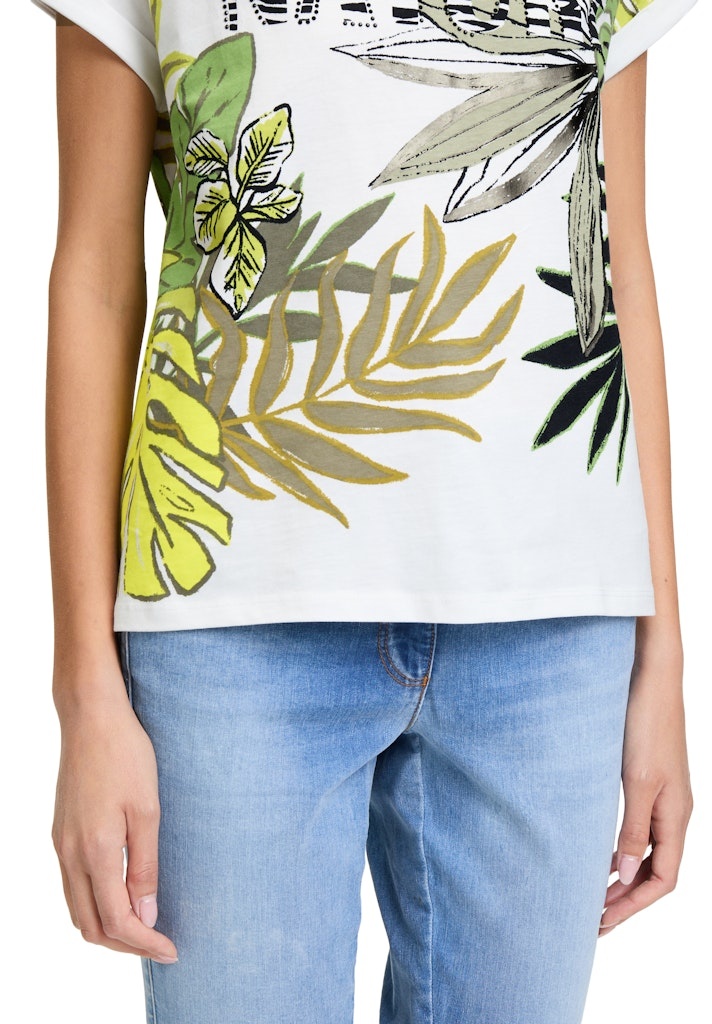 So Cosy Shirt in het Wit Combinatie met ronde hals, kapmouwen en met een gedeeltelijke jungleprint.