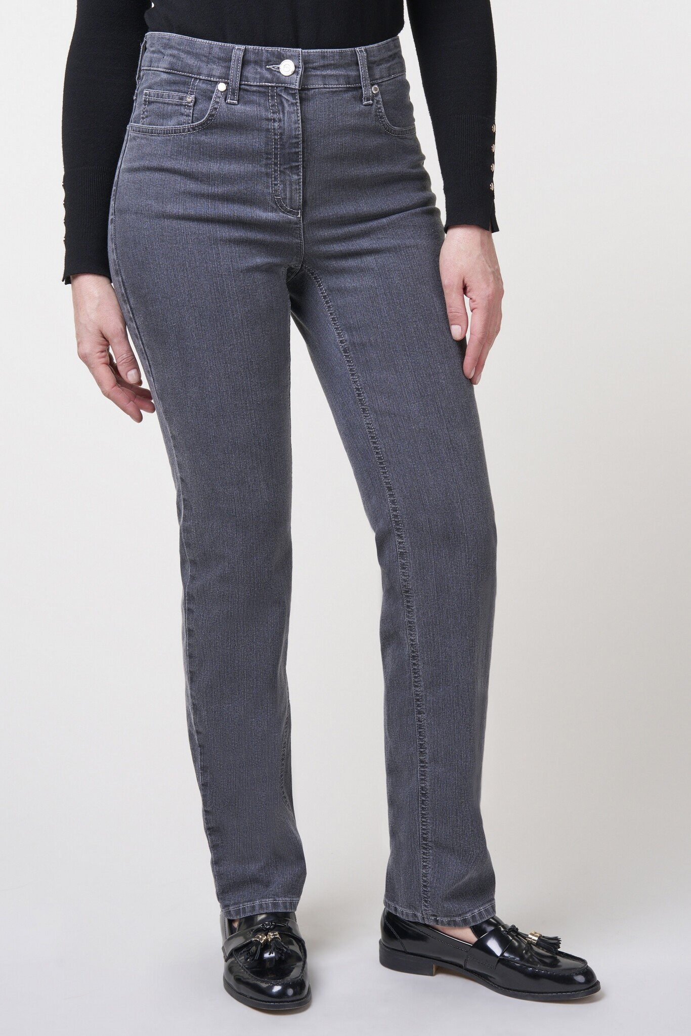 ZRS / Zerres Jeans model Kora-002-80-36-511 in kleur Grijs in een 5 pocket model, elastische band. Ideale jeans voor dames met meer Taille maar slankere bovenbenen.